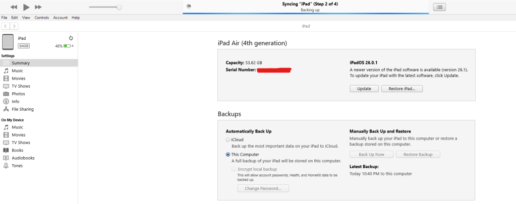 - Important: Do NOT check “Encrypt local backup” if you want to scan without password